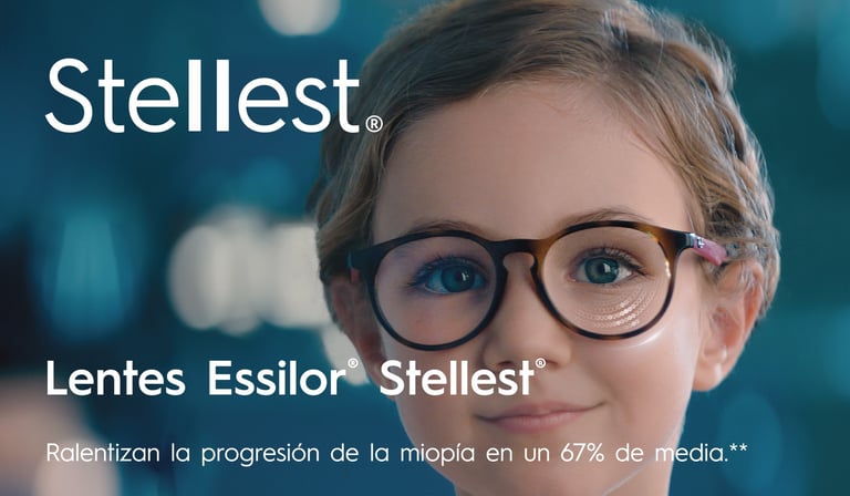 Las lentes Essilor® Stellest®, ralentizan la progresión de la miopía en el 67% de los casos. .Estas lentes han sido diseñadas con una tecnología exclusiva y pionera llamada HALT. La tecnología HALT está formada por una agrupación de 1.021 lentes invisibles, que no comprometen la estética en el uso de las gafas.